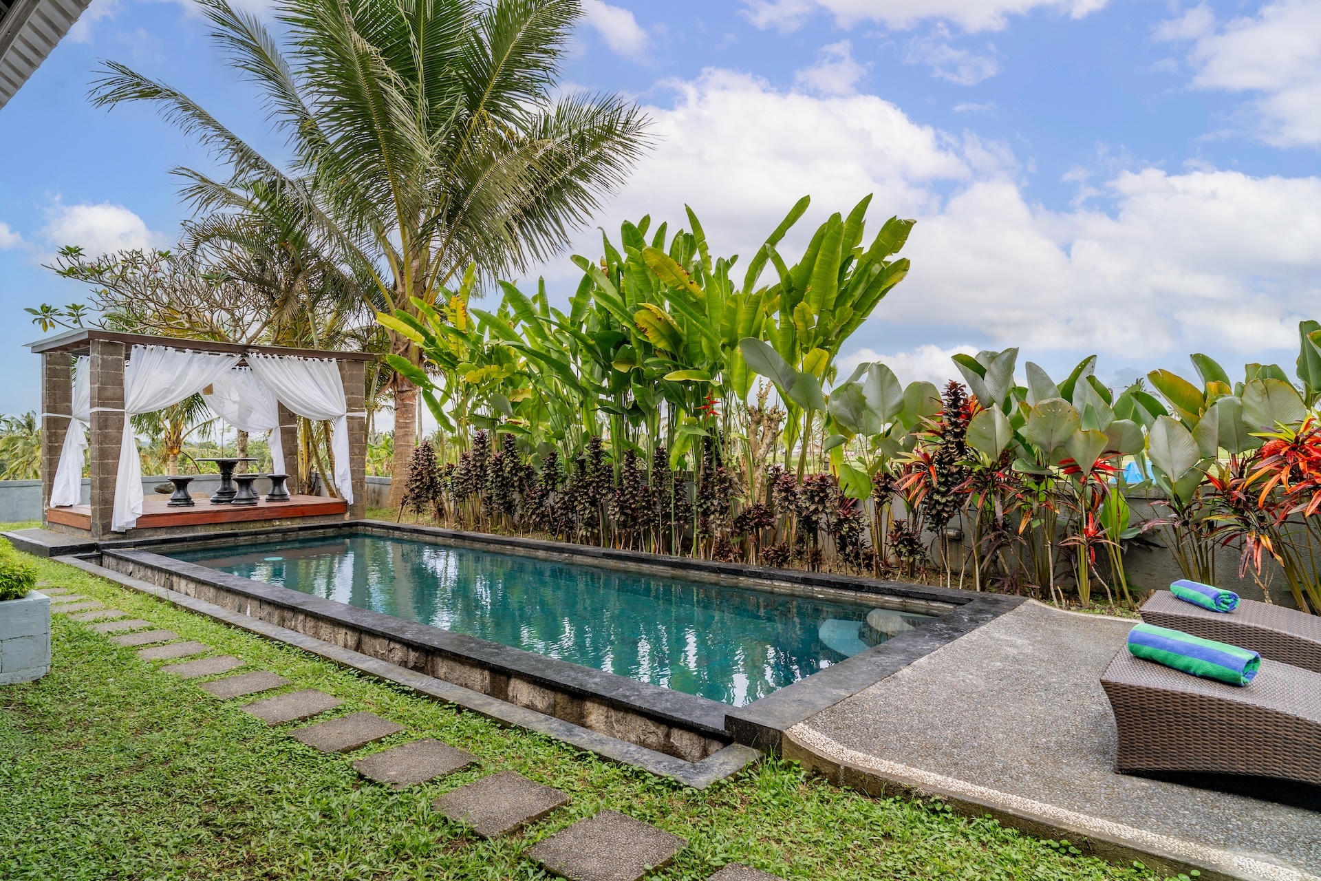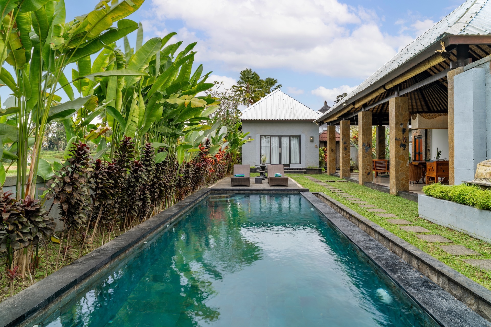 Welcome to your serene escape in Taro – Tegalalang, where nature meets comfort. This spacious 2-bedroom villa is nestled among rice fields and tropical greenery, offering privacy, fresh air, and a truly Balinese atmosphere, just a short drive from Ubud. Perfect for couples, families, or friends, this villa is your home base for relaxation and exploration.